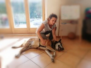 Ma chienne a une problématique importante à l’arrière train puisqu’il lui manque une petite partie osseuse du bassin et qu’elle n’utilise seulement 3 pattes pour se déplacer. Le Dr Camille Rozand lui prodigue des soins magnifiques et, à chaque fois, elle sort de chez elle toute revigorée dans la joie et l’énergie. Elle va très bien grâce à elle. J’ajoute que je fréquente assidûment les ostéopathes depuis plus de 30 ans pour moi-même et mes animaux. Et bien, c’est la meilleure que j’ai jamais rencontré. Et c’est vrai.